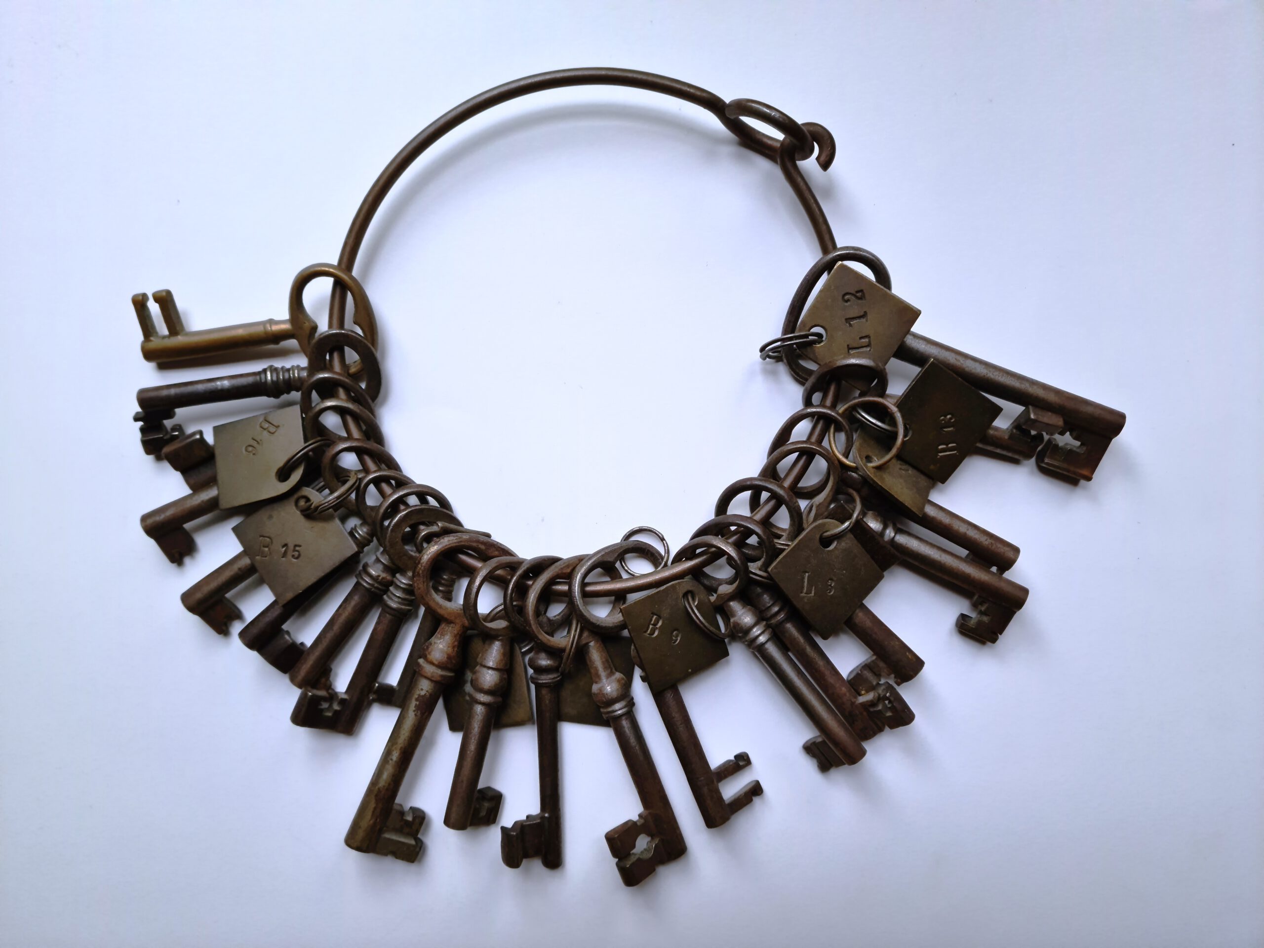 Dit zijn ‘de sleutels van de Tollensstraat’- we hebben nog geen deuren gevonden om te passen, maar het verhaal is dat de grootvader van de schenker een van de laatste medewerkers aldaar is geweest. De oude remise Tollenstraat staat tegenwoordig bekend als “De Hallen” in de buurt van de Kinkerstraat. Als je hier gaat kijken zul je nog veel zien dat terug doet denken aan de tijd dat dit een remise was.
